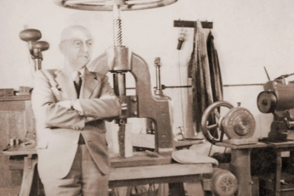 After the war, at the age of 45, Emil Hahnenkratt took a courageous new start—in his own garage. A gifted technician with an unfailing touch for his machines, he began producing the first medical small parts in series.